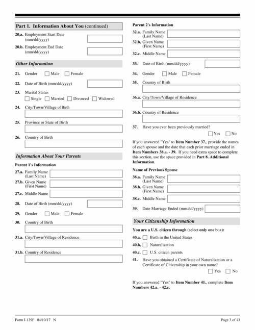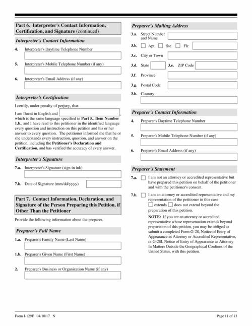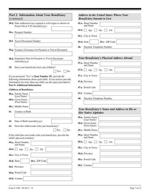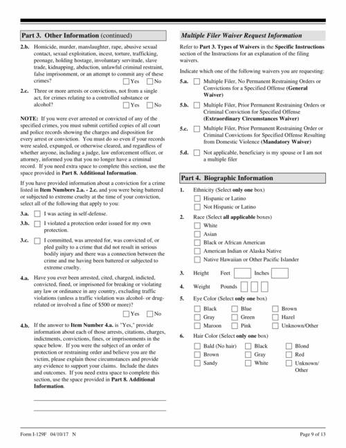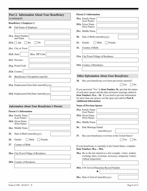- Mencione toda la información requerida en todas las secciones del Formulario I-129F. Si comete un error, debe iniciar un nuevo formulario de solicitud.