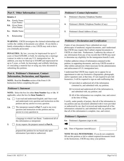 - Use tinta negra, escriba letras mayúsculas, brinde toda la información requerida (complete todas las secciones de la petición), firme el Formulario I-130 y nunca corrija el formulario.