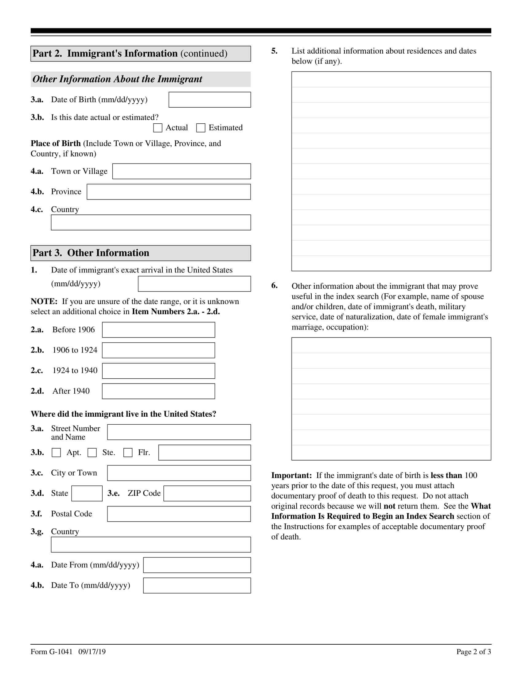 The G-1041 form is used to make an index search at the US Citizenship and Immigration Services (USCIS) historical database. The result of the search is provided as a number of the file and/or another ID for the historical record if any. Copies of the records are provided after filing Form G-1041A.