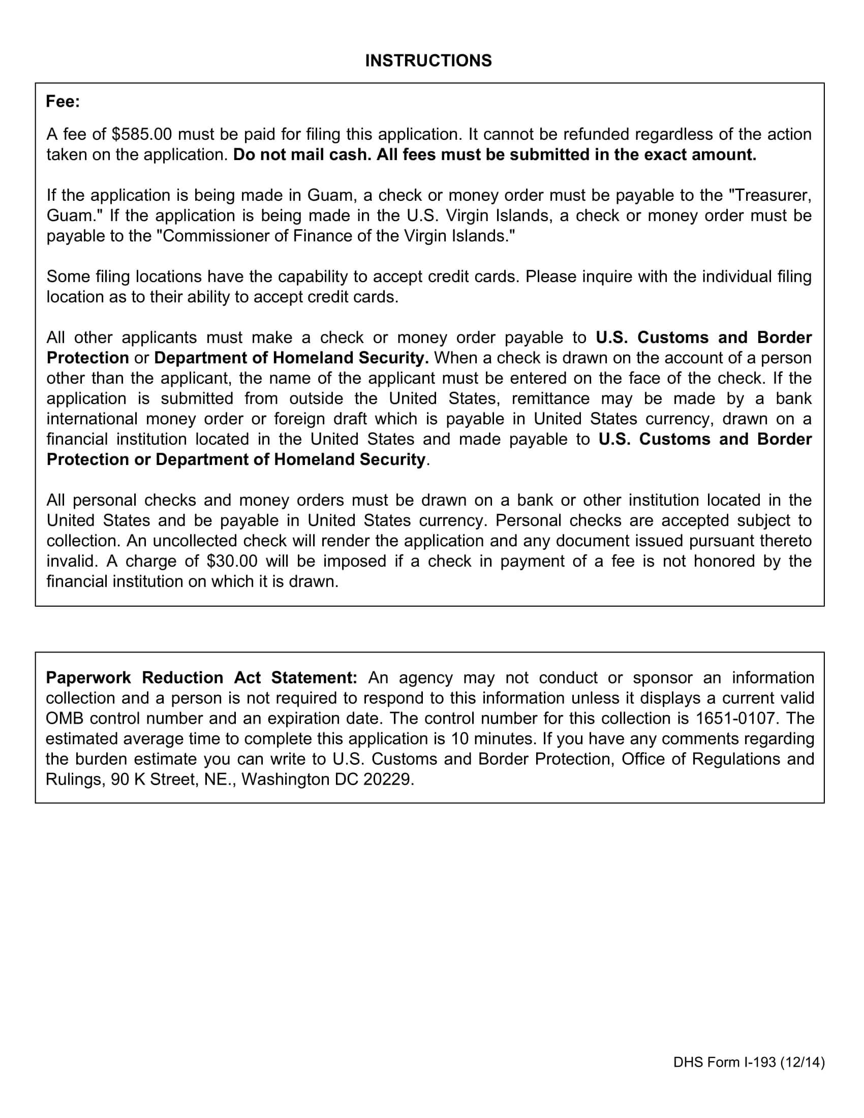 Форма I-193 предоставляется иностранцами, которые на законных основаниях проживают в США в случаях их въезда в страну без использования их национальных паспортов и виз.