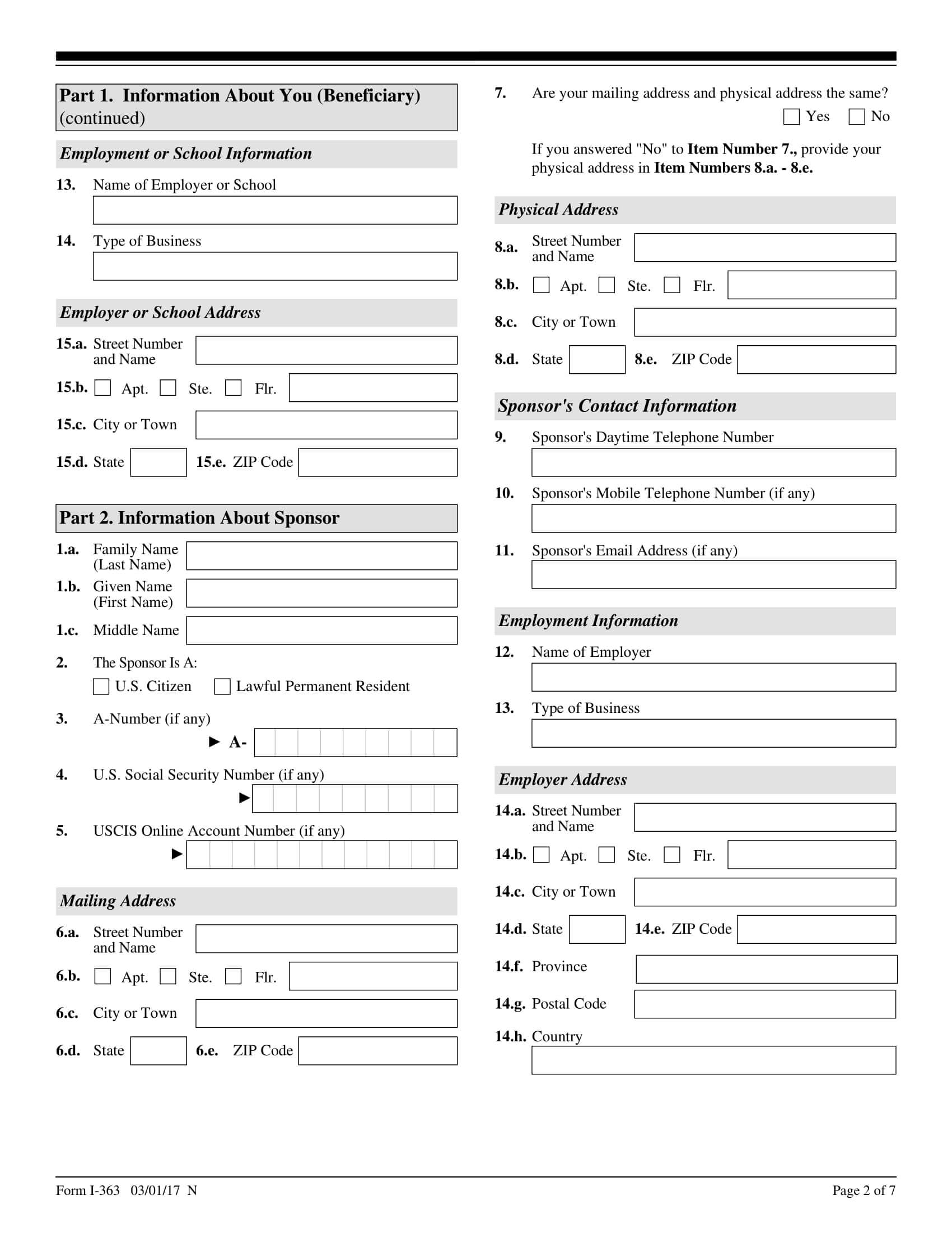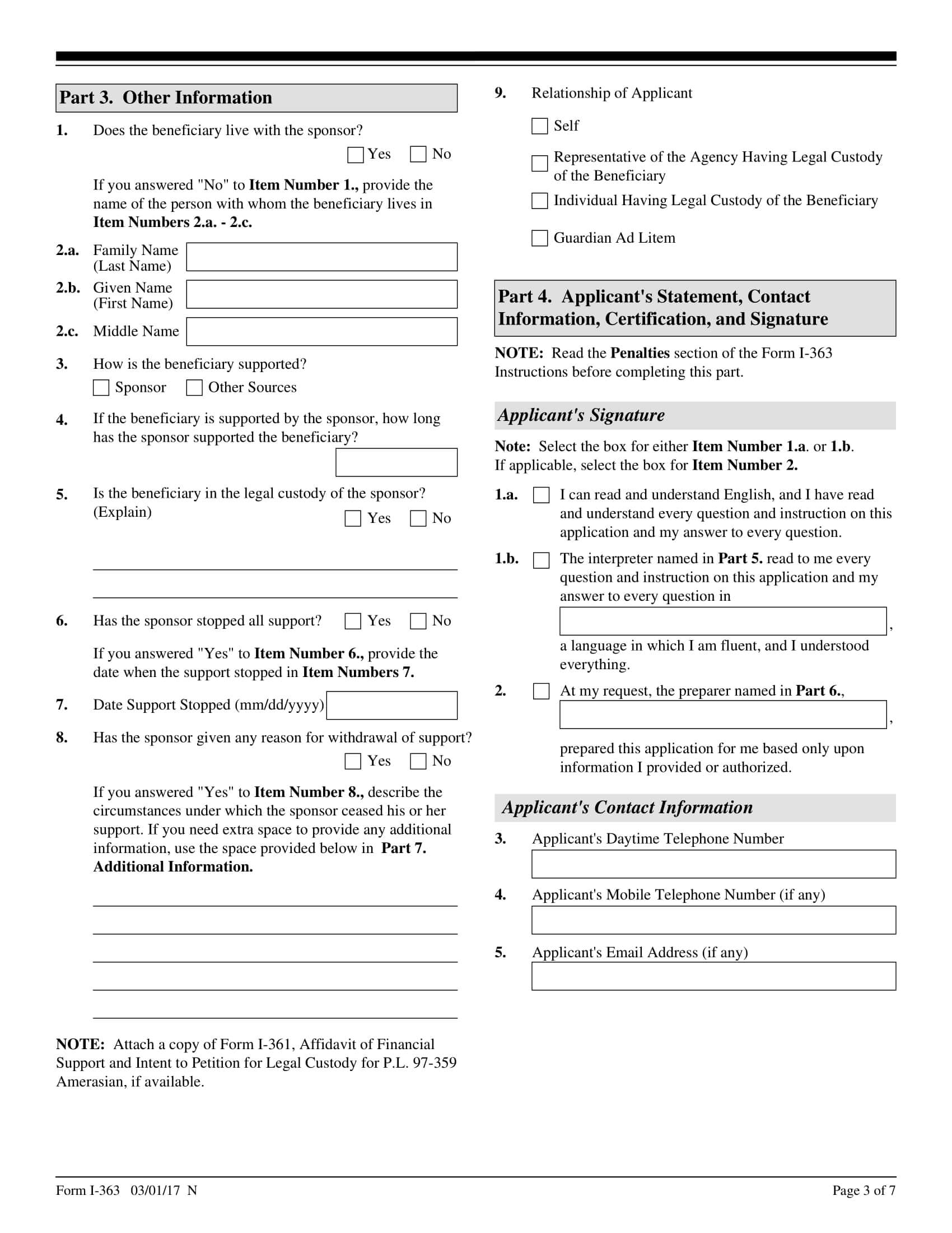 Форма I-363 | Запрос о применении аффидевита о финансовой поддержке и намерении ходатайствовать о законном хранении публичного права 97-359 Amerasian