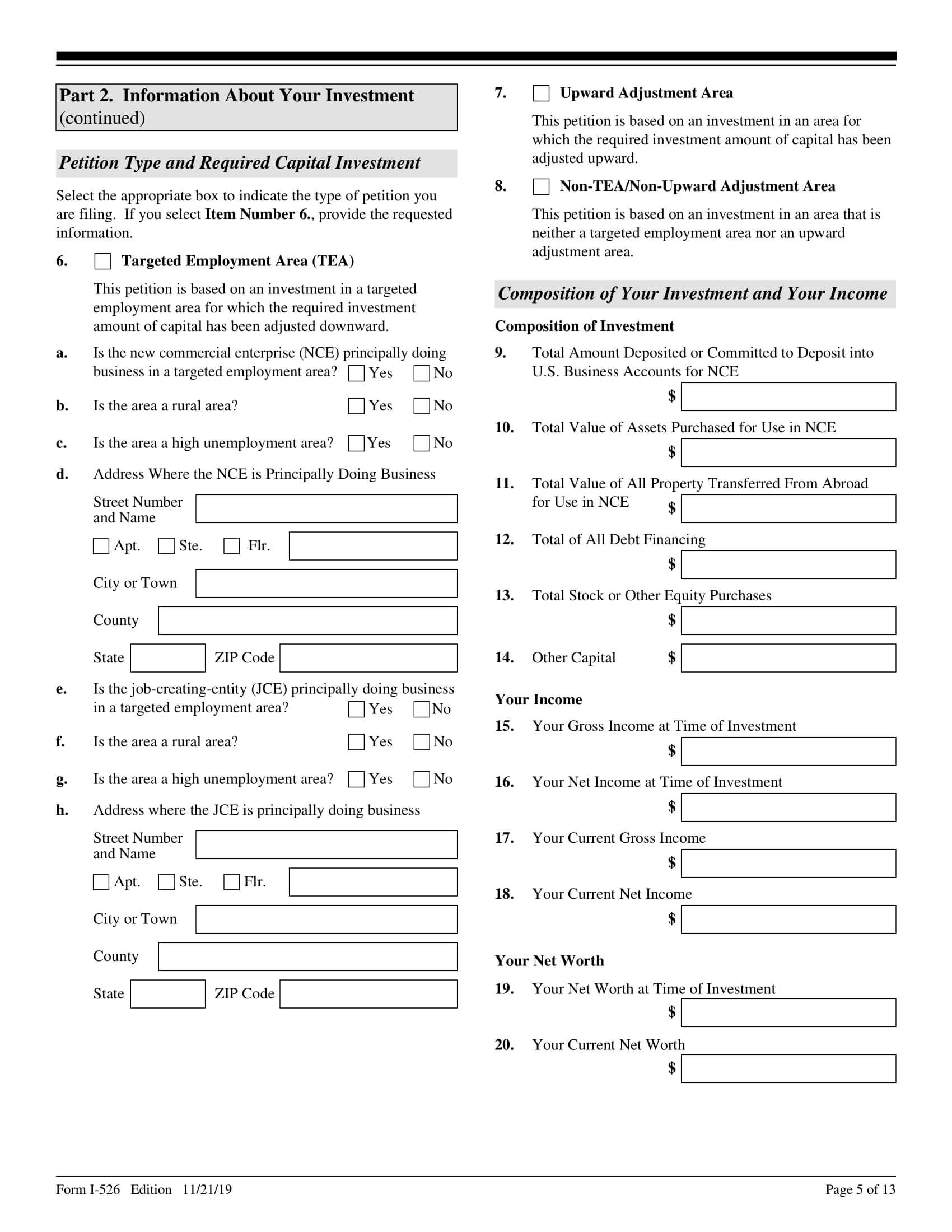 Если у вас есть надежный бизнес-план или достаточно денег, чтобы инвестировать в нашу страну и создать собственный бизнес в США, вы можете иммигрировать в Америку. Вам необходимо подать в USCIS форму I-526 (Ходатайство об иммиграции иностранного предпринимателя), если вы хотите иммигрировать в США в качестве делового человека.